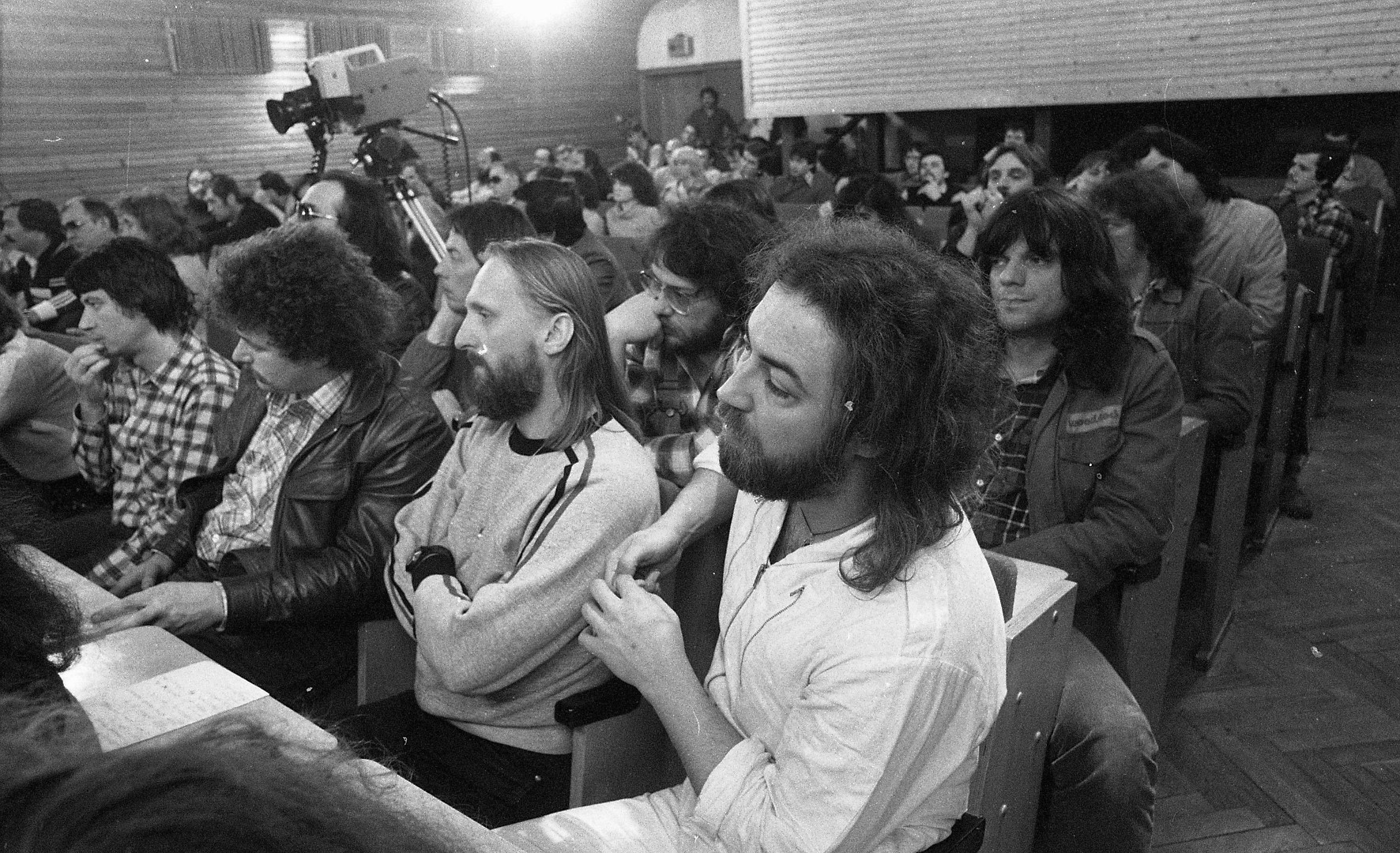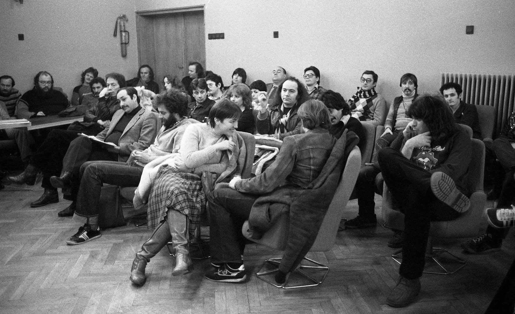 A Művelődési Minisztérium és a Kommunista Ifjúsági Szövetség (KISZ) találkozót szervezett 1981. március 23–25-én a tatai Mező Imre KISZ Továbbképző Központban, ahol a minisztérium képviselői, valamint a könnyűzenével is foglalkozó intézmények vezetői: Szentkuthy Pál és Bolba Lajos a Magyar Rádiótól, Pentz Zsolt a Nemzetközi Koncertigazgatóságtól, Vass Gábor a Zeneműkiadótól, Péter Miklós az Országos Szórakoztatózenei Központtól (OSZK), Bors Jenő és Erdős Péter a Magyar Hanglemezgyártó Vállalattól (MHV), Bulányi László, Bali György az Országos Rendező Irodától (ORI) és a hatóságok által elfogadottnak tekintett, meghívott könnyűzenészek megvitatták a műfajt érintő legégetőbb kérdéseket. A konferencia során Tóth Dezső művelődési miniszterhelyettes felvetette a könnyűzenei műfaj "bizonyos veszélyövezeteinek" és "nemkívánatos megnyilvánulásainak" problémáját, más szóval az akkori underground zenei mozgalom jelenségét. A tanácskozáson készült képek. Fotó: Fortepan / Urbán Tamás.
