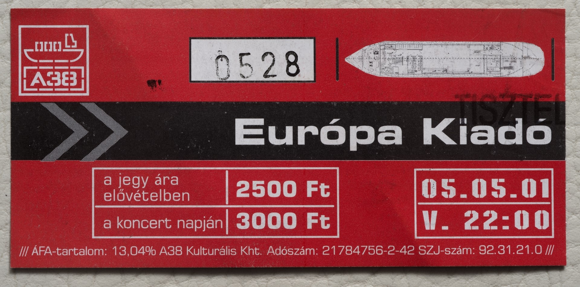 Belépőjegyek a zenekar A38-on rendezett koncertjeire.